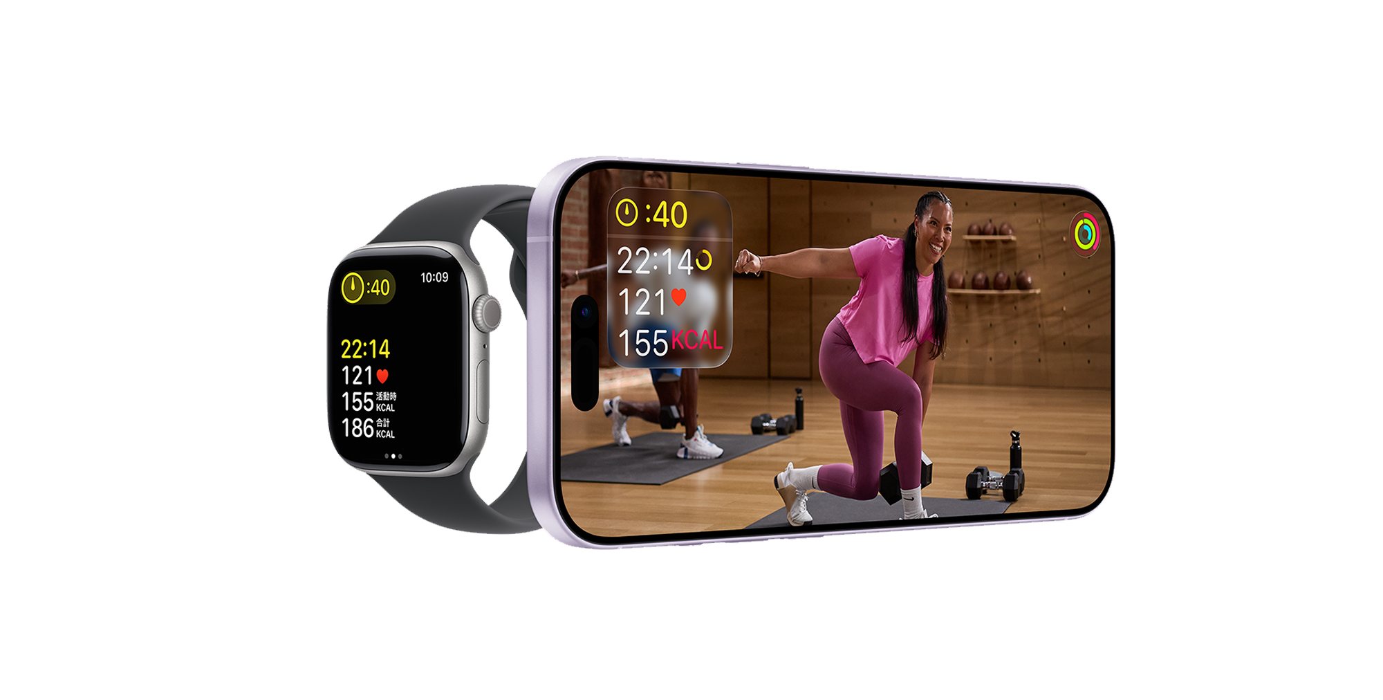 いいえ。Fitness+の利用に必要なのは iPhone だけです。Fitness+を Apple Watch と一緒に使うと、心拍数、消費カロリー、3 つのアクティビティリングの進み具合といったパーソナルな指標が、あらゆるワークアウト中にリアルタイムで画面上に表示されます。